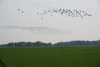 一到Molly家,突然湧出好多人,反正拿出歐巴桑精神,雖語言不通也能靠肢體東拉西扯,笑聲不斷,房子算是長形,樓梯陡直上到頂樓,Molly說前面的稻田是他們家的,閒著也是閒著,大伙兒要打著赤腳走在田埂上,途中經過牛棚,如同PK家,這些都是養來為了牛奶。